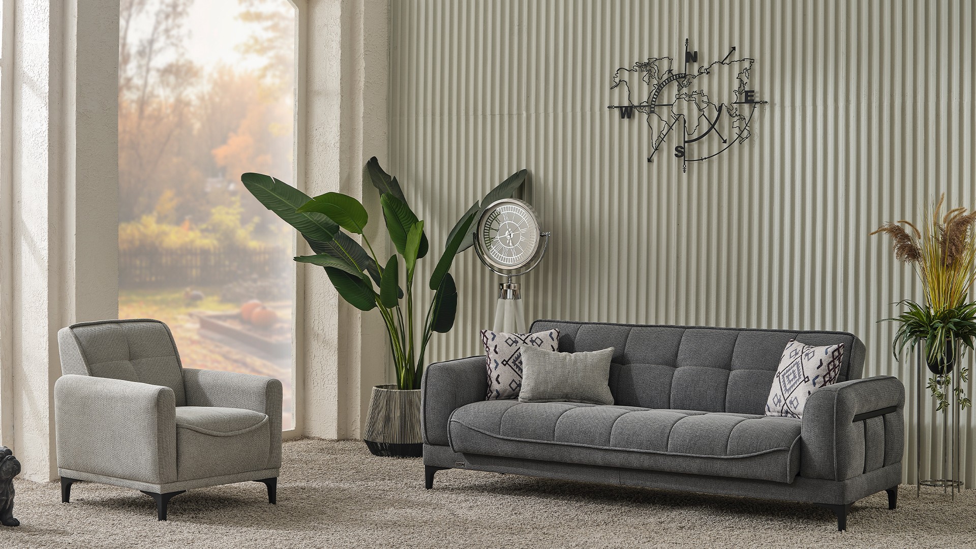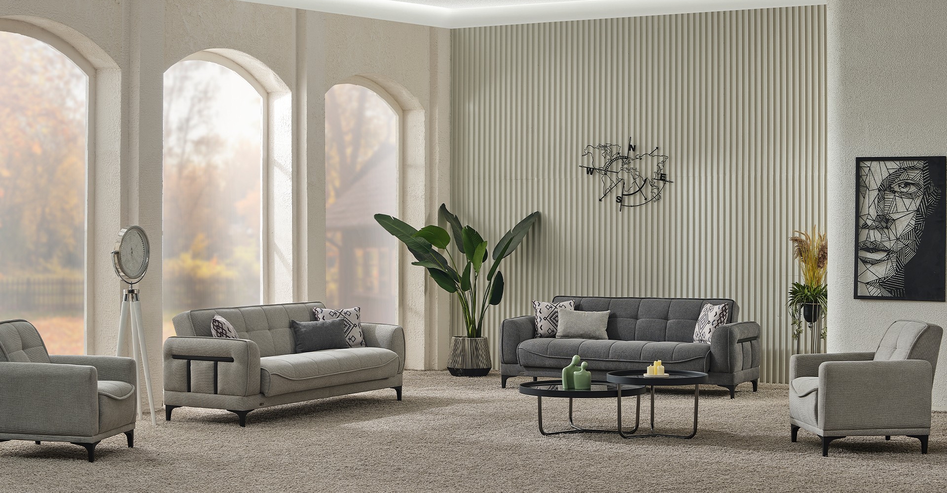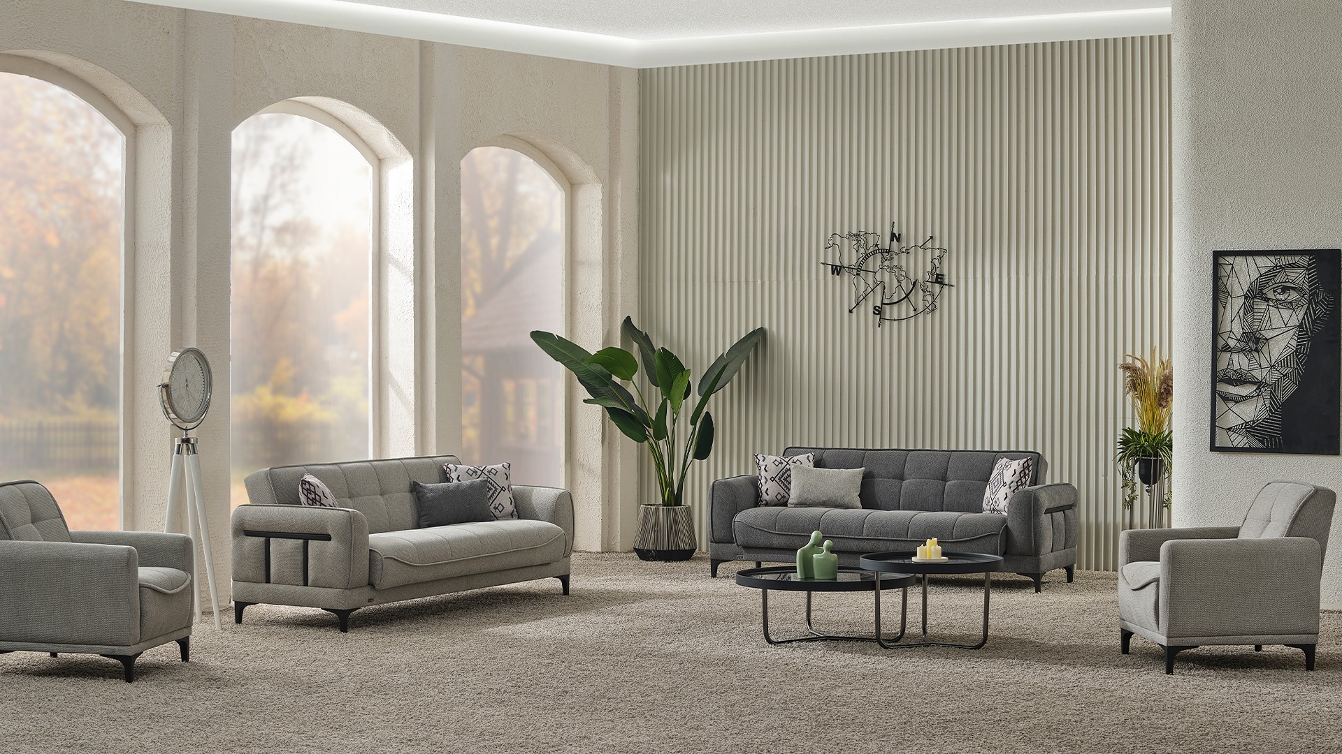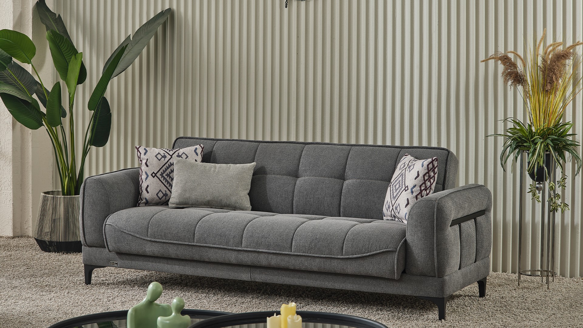 Ürün Kodu: 514Kumaş Kodu: 3+3+1+1: VEST 01Üçlü: G: 223 / D: 90 / Y: 85 / Yatak: 110x180İkili: G: 173 / D: 90 / Y: 85 / Yatak: 110x127Berjer: G: 80 / D: 88 / Y: 90