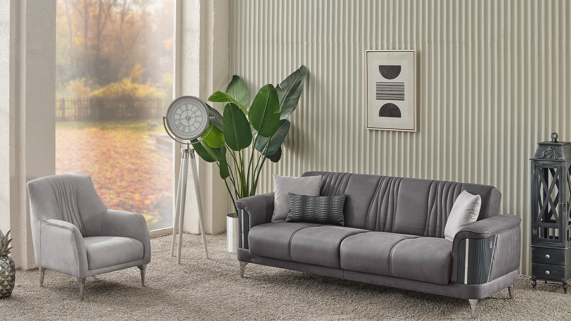 Ürün Kodu: 512Kumaş Kodu: 3: EVA 08 / 3+1+1: EVA 07Üçlü: G: 230 / D: 95 / Y: 87 / Yatak: 110x180İkili: G: 177 / D: 95 / Y: 87 / Yatak: 110x127Berjer: G: 75 / D: 81 / Y: 87